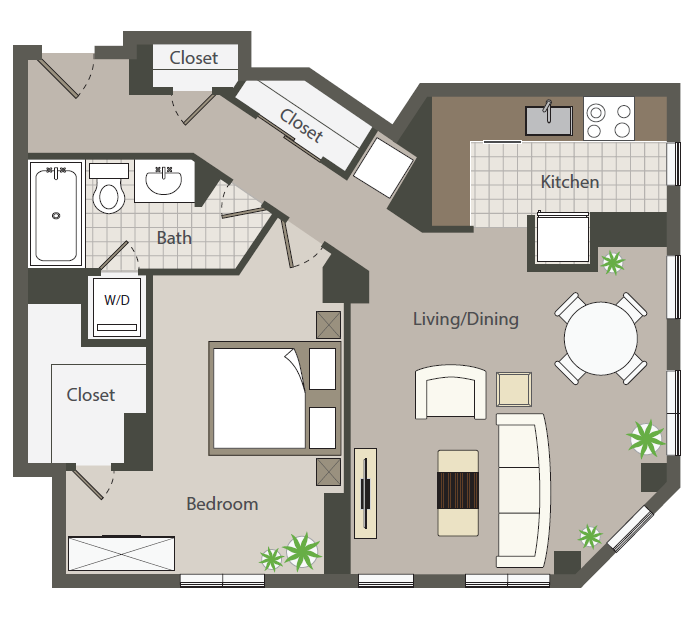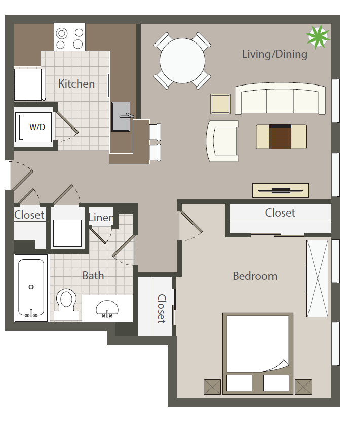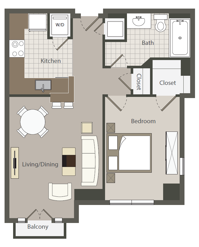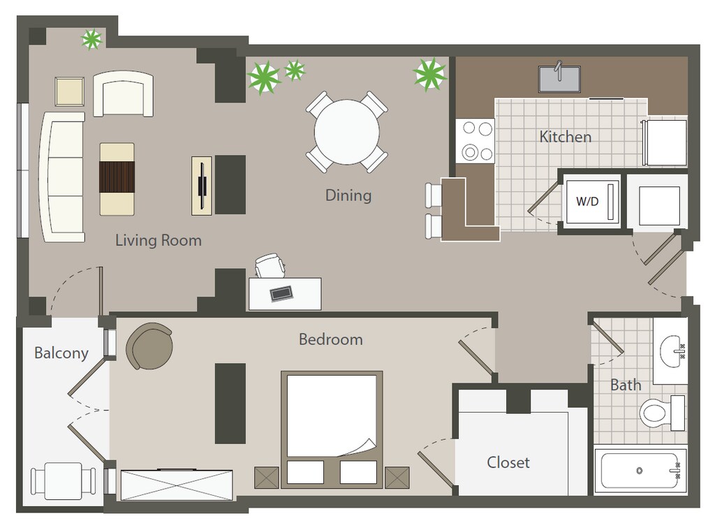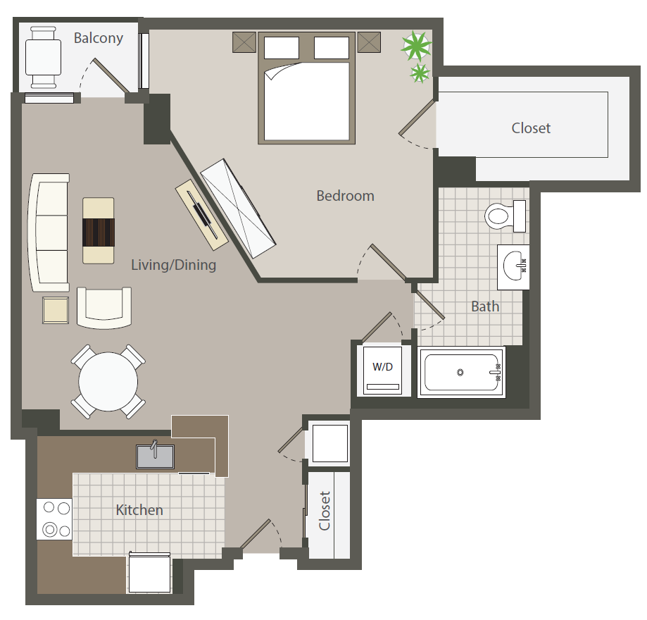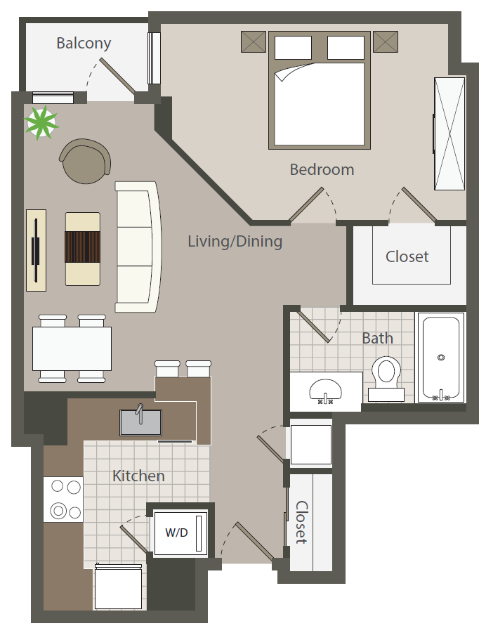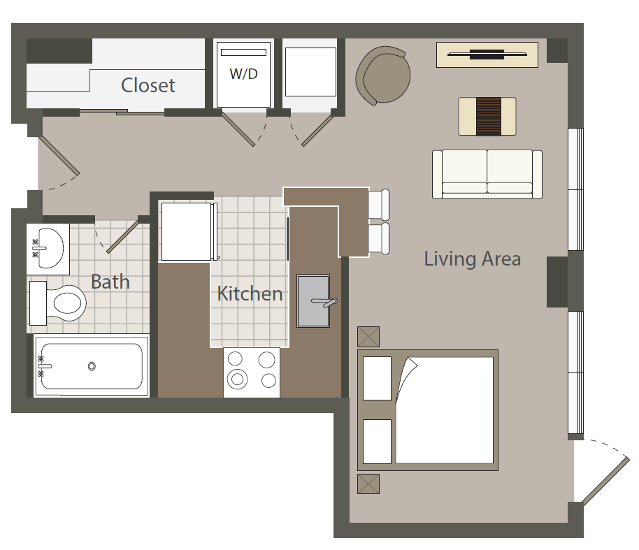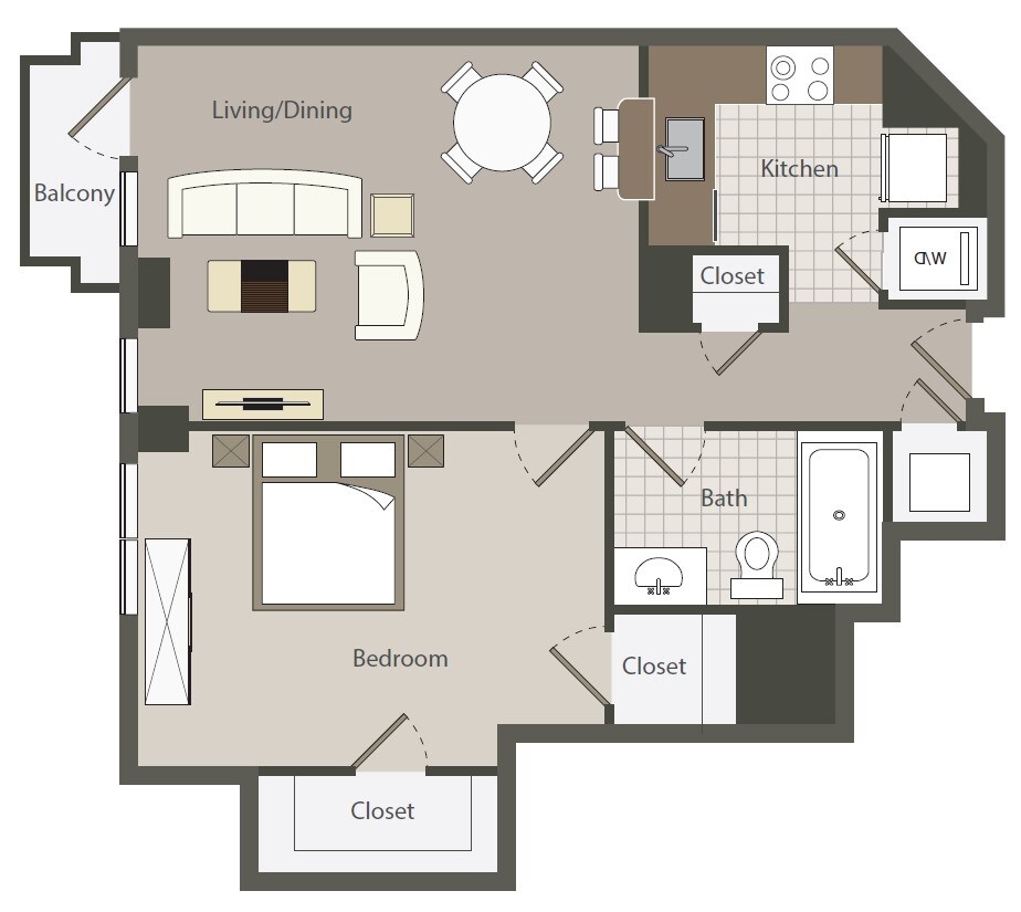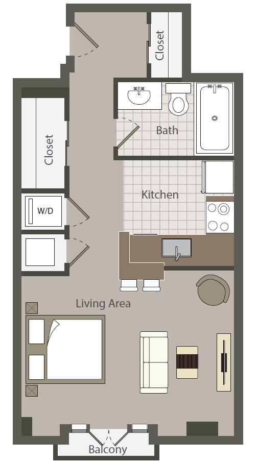 Estudio, 1 Baño, 514 pies²Disponible AhoraGalería del Modelo