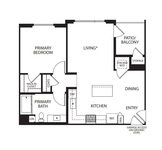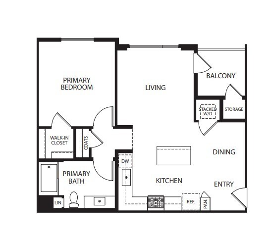 Modelo de apartamento: A1$2,4001 Dormitorio, 1 Baño, 765-779 sq ftDisponible March 28, 2026![]()