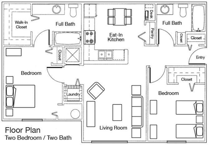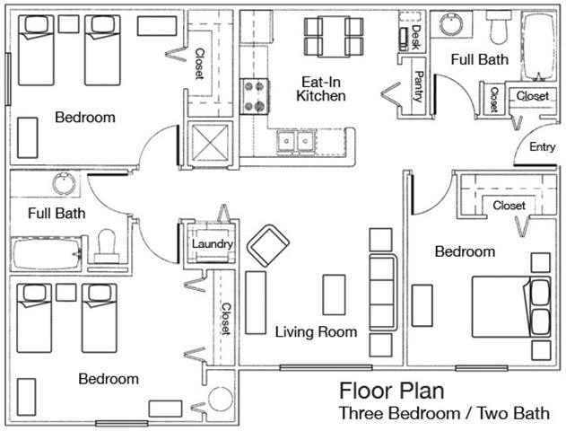 Modelo de apartamento: 2x22 Dormitorios, 2 Baños, 926 sq ftNo Disponible2x2 - Plano 1 3 Dormitorios