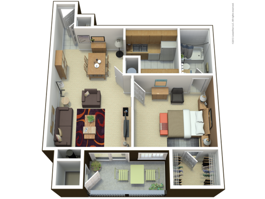 1 Dormitorio, 1 Baño, 800 pies²Disponible AhoraGalería del Modelo