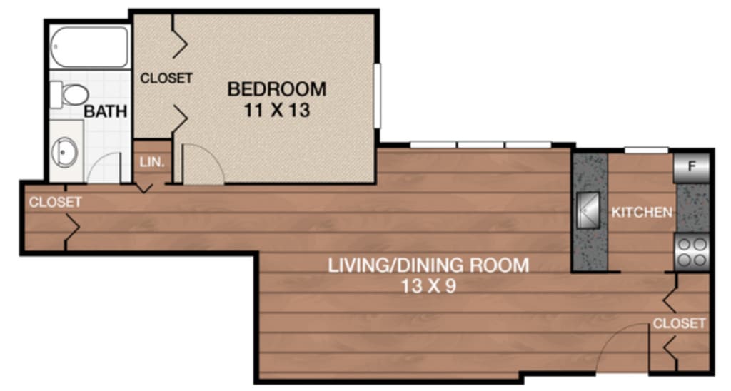 Modelo de apartamento: A1 FRDesde $1,299Estudio, 1 Baño, 530 sq ftDisponible Ahora![]()