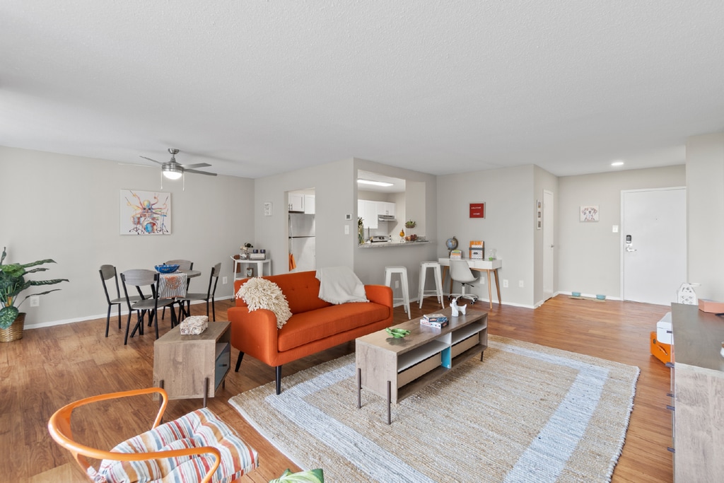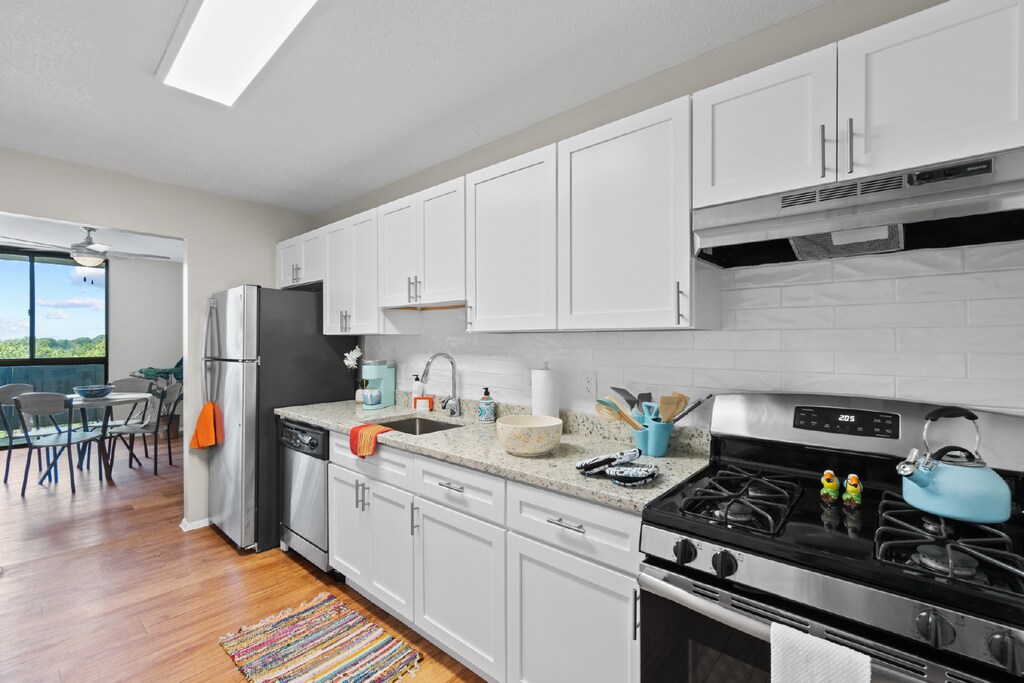 Nuestros acogedores, abiertos y ventilados apartamentos te dan la bienvenida con encanto, belleza y mucho más. Cada paso que des se vuelve elegante en los pisos de madera, y las comidas que cocinas son más alegres en tus electrodomésticos de acero inoxidable y encimeras de granito con acabados impecables. Armarios amplios, aire acondicionado centralizado y lavaplatos significan que nunca te faltará espacio, siempre estarás cómodo y nunca perderás tiempo para limpiar. Los apartamentos seleccionados tienen patios o balcones privados para relajarte con vistas panorámicas y desayunadores para comenzar tu día. Gracias a nuestro edificio con control de acceso, equipo de seguridad y entrada sin llave, tendrás tranquilidad. Nuestra propiedad es saludable, así que tu apartamento de lujo que admite mascotas y todos los terrenos son libres de humo.