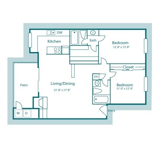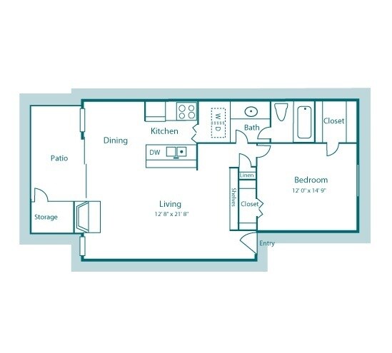 Modelo de apartamento: A21 Dormitorio, 1 Baño, 550 sq ftDisponible Ahora![]()