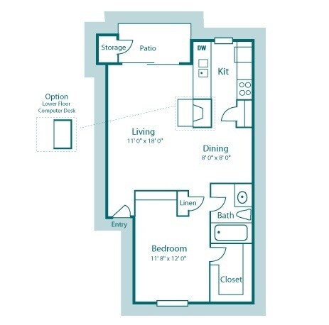 Modelo de apartamento: A11 Dormitorio, 1 Baño, 422 sq ftDisponible Ahora![]()