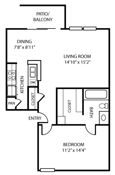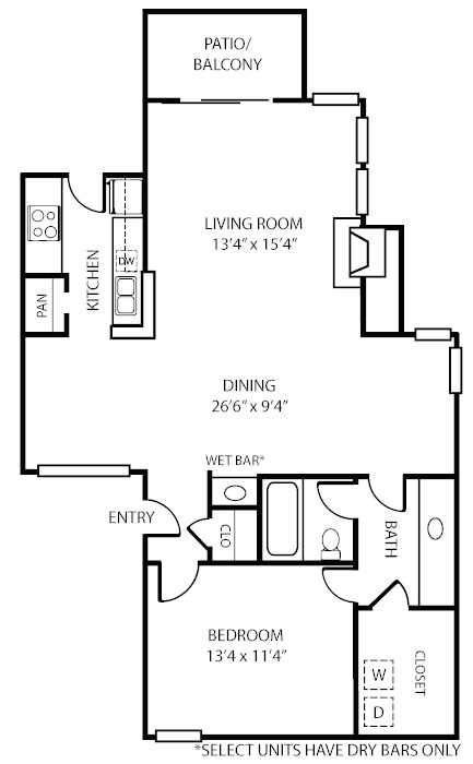 Modelo de apartamento: Oakmont-E11 Dormitorio, 1 Baño, 506 sq ftDisponible Ahora![]()