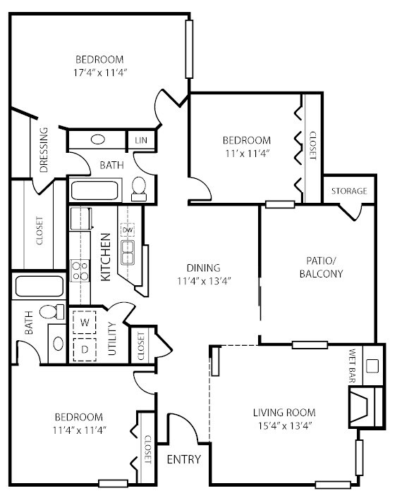 Modelo de apartamento: Oakmont-C13 Dormitorios, 2 Baños, 1361 sq ftNo Disponible![]()