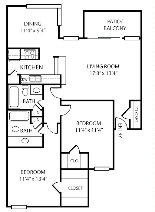 Modelo de apartamento: Oakmont-B22 Dormitorios, 2 Baños, 1254 sq ftNo Disponible![]()