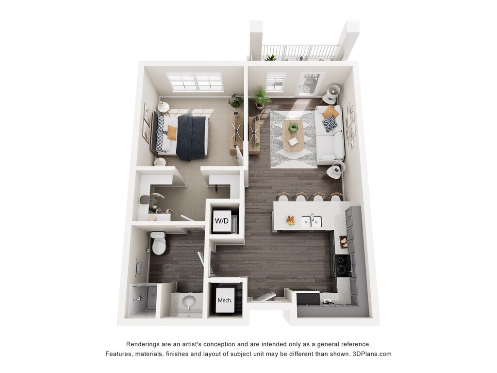 1 Dormitorio, 1 Baño, 855 pies²Disponible AhoraGalería del Modelo