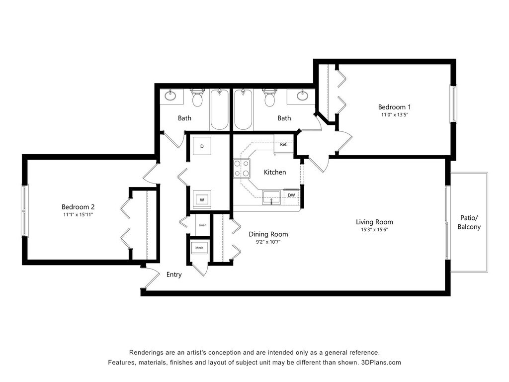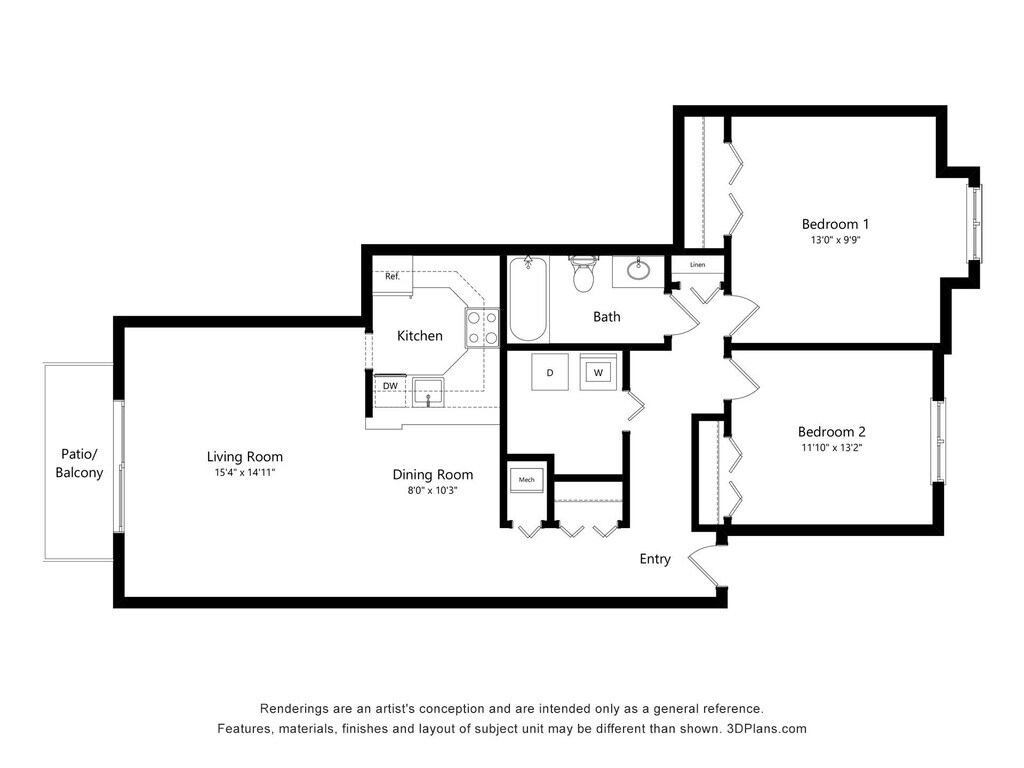 2 Dormitorios, 1 Baño, 940 pies²Disponible AhoraGalería del Modelo