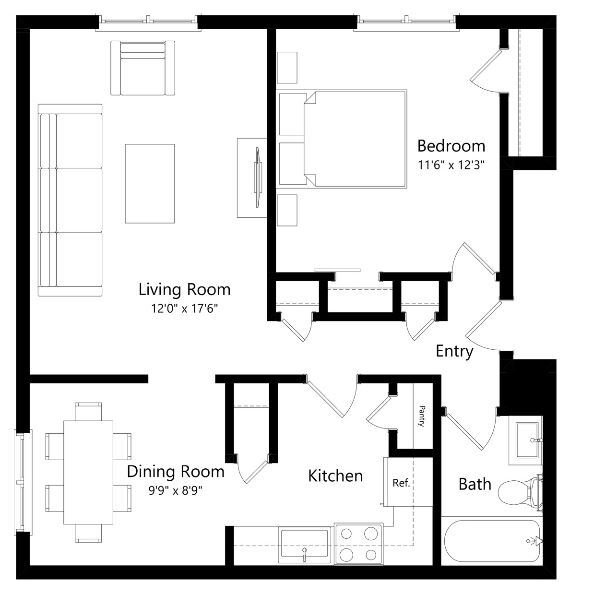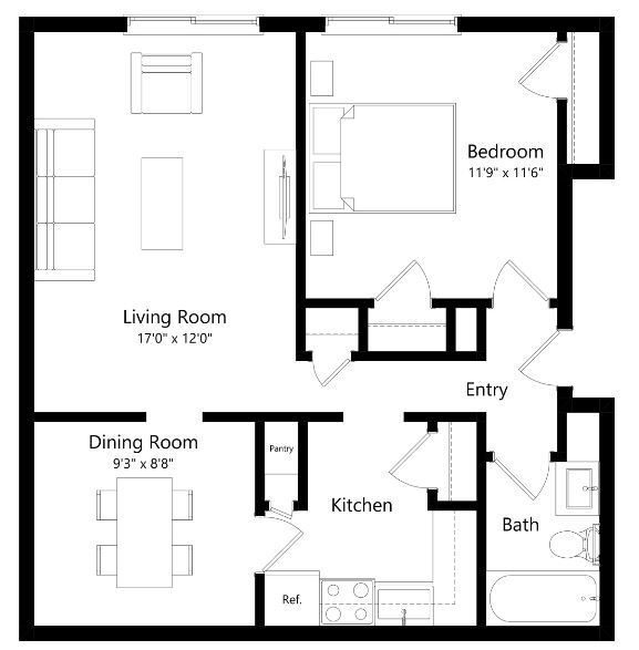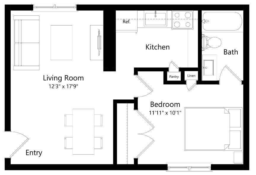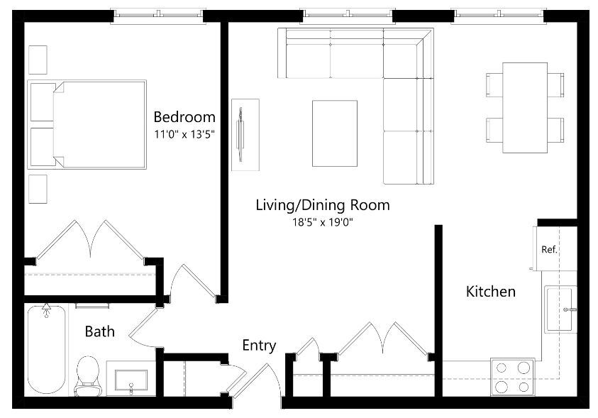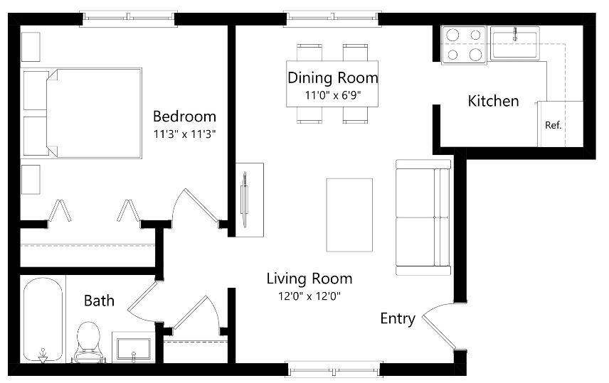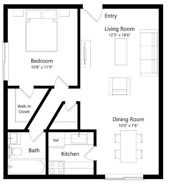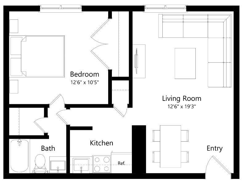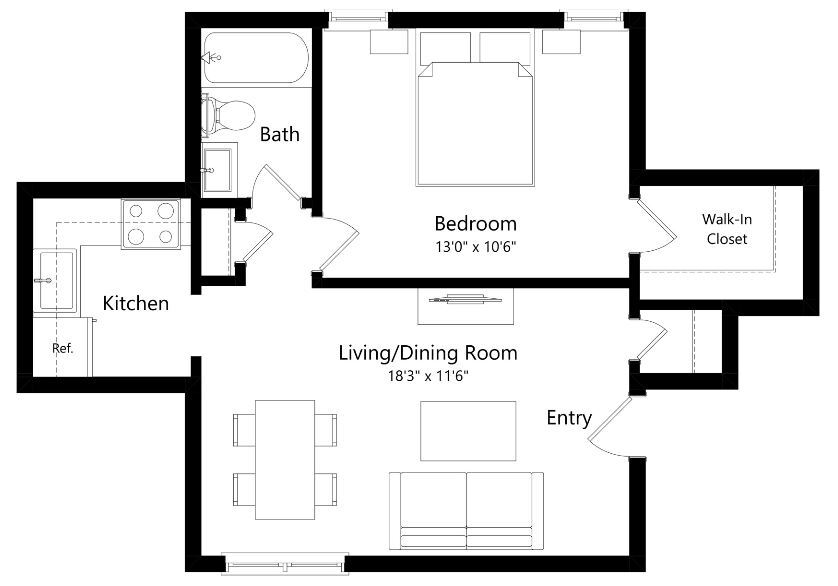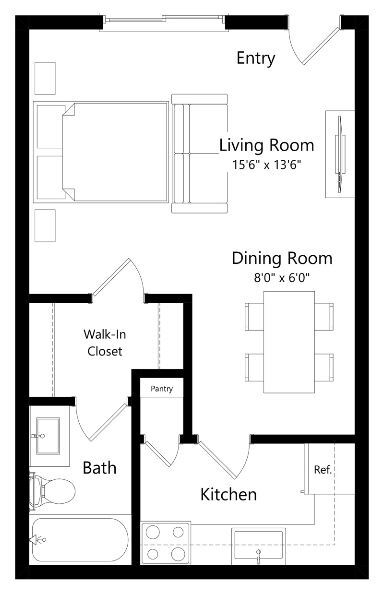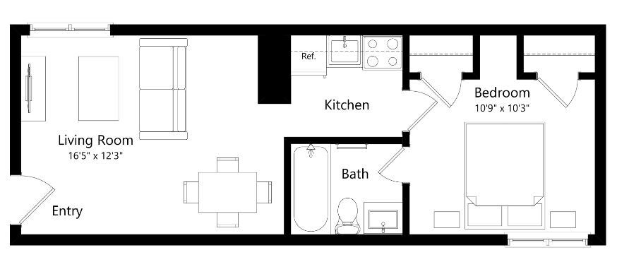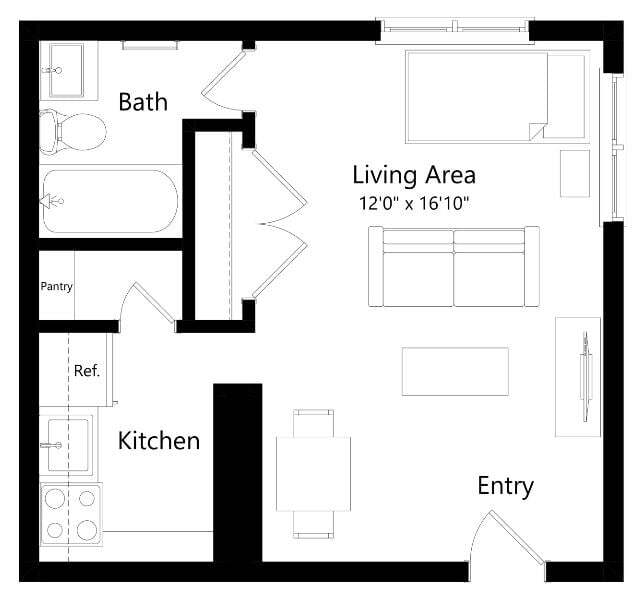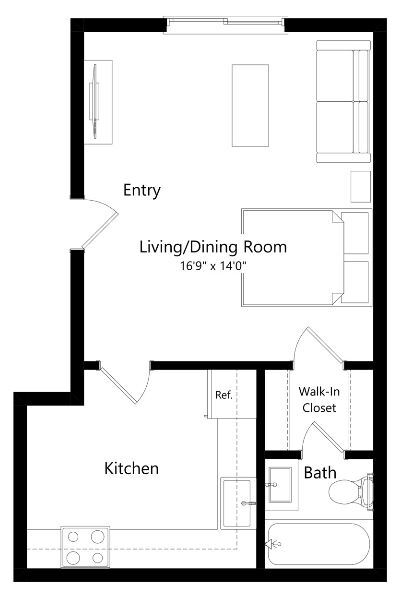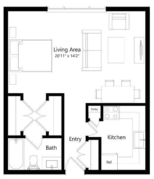 Estudio, 1 Baño, 431 pies²Disponible AhoraGalería del Modelo