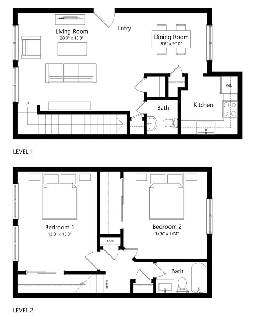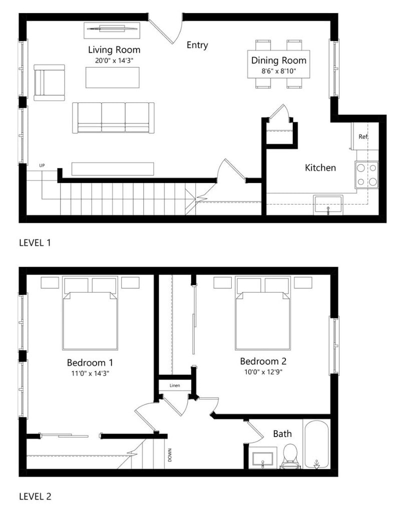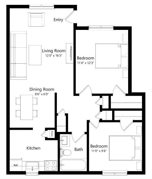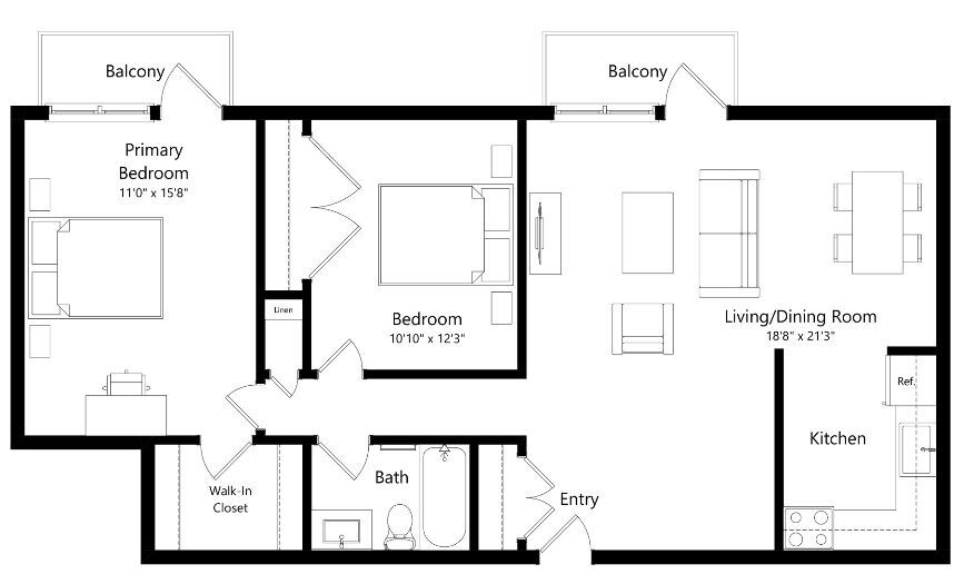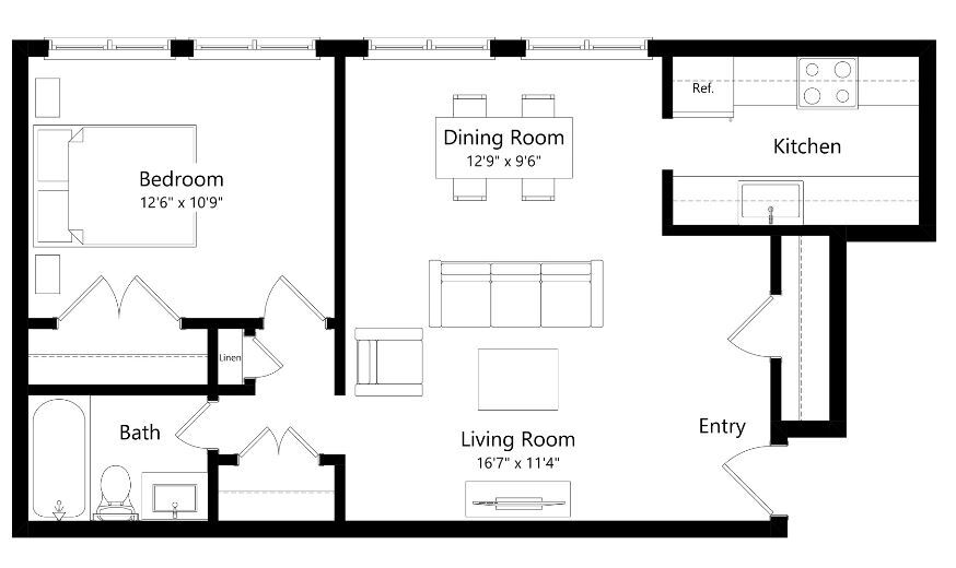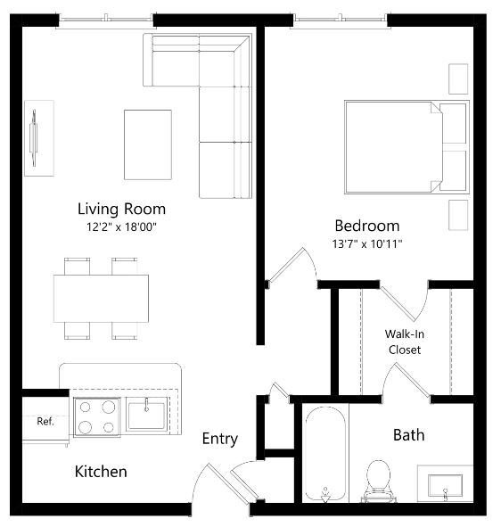 1 Dormitorio, 1 Baño, 654 pies²Disponible AhoraGalería del Modelo