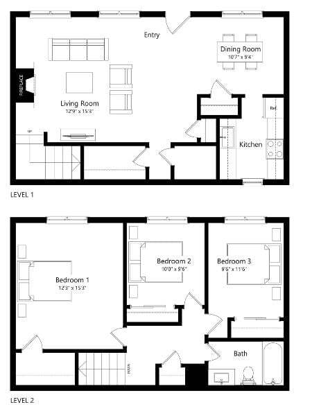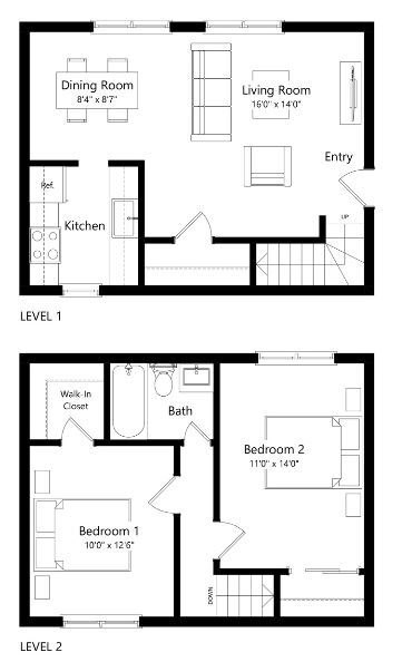 - Planos de planta tipo estudio, de una, dos y tres habitaciones