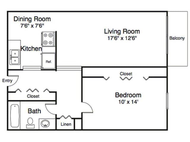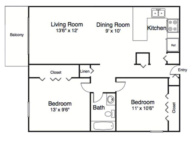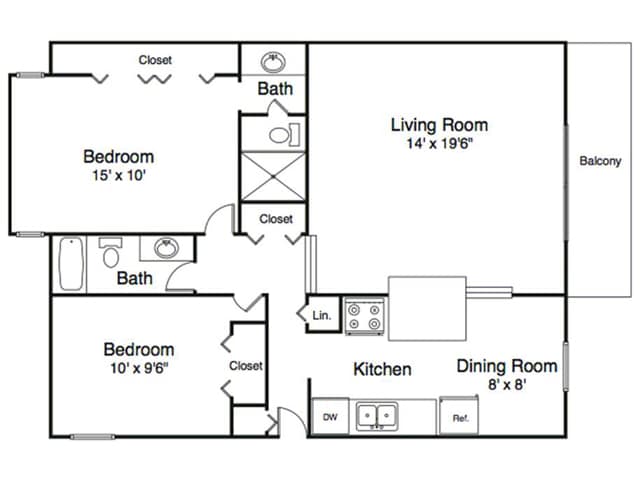 Modelo de apartamento: Two Bedroom$8801 Dormitorio, 1 Baño, 750 sq ftDisponible Ahora![]()