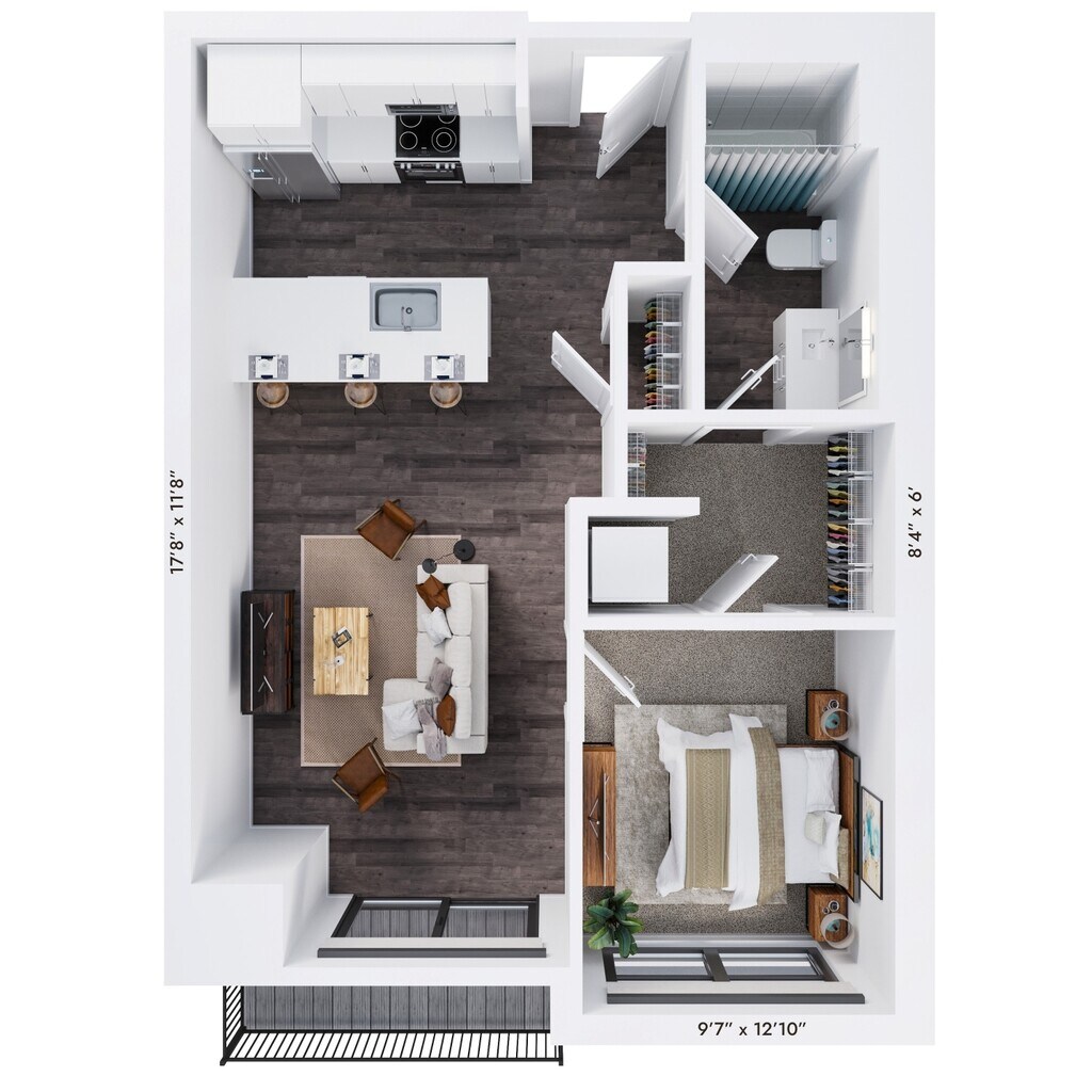 Estudio, 1 Baño, 523-528 pies²Disponible AhoraEl más grandeEsta opción tiene las unidades más grandes para este modeloGalería del Modelo