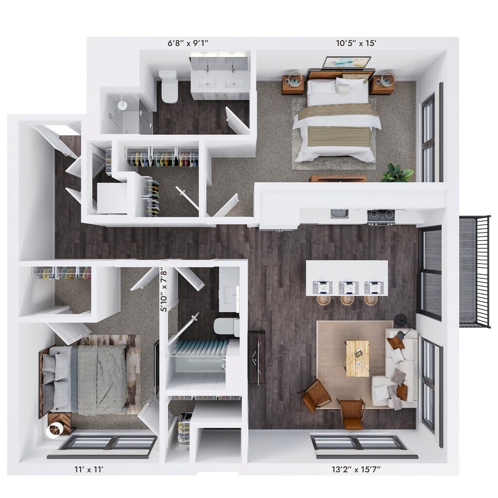 Modelo de apartamento: S2Desde $1,002Estudio, 1 Baño, 447 sq ftDisponible December 28, 2025![]()
