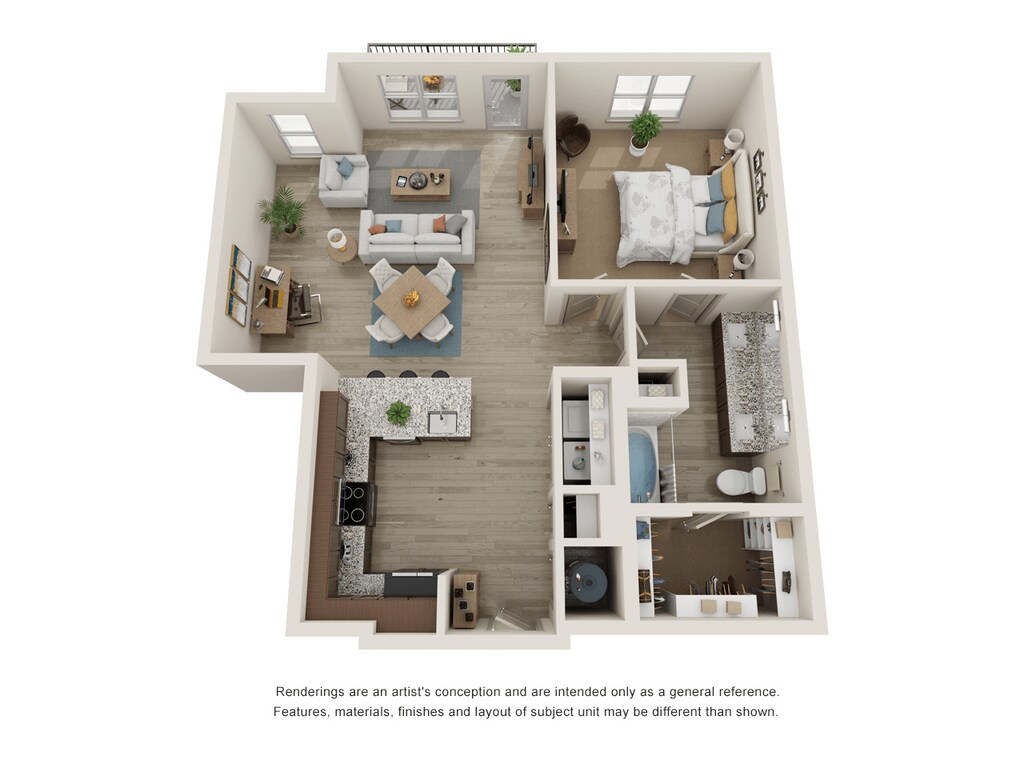 1 Dormitorio, 1 Baño, 781 pies²Disponible January 7, 2026Galería del Modelo