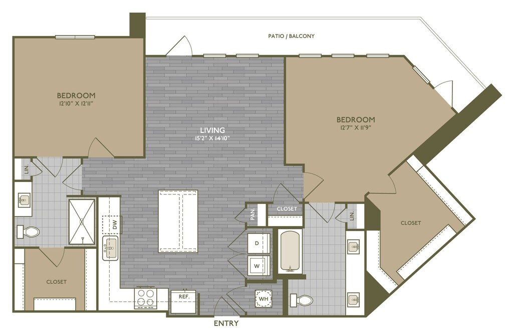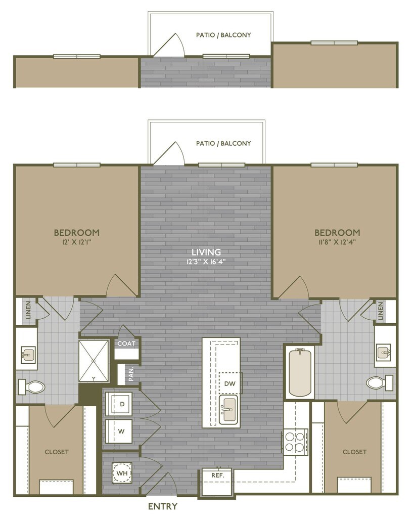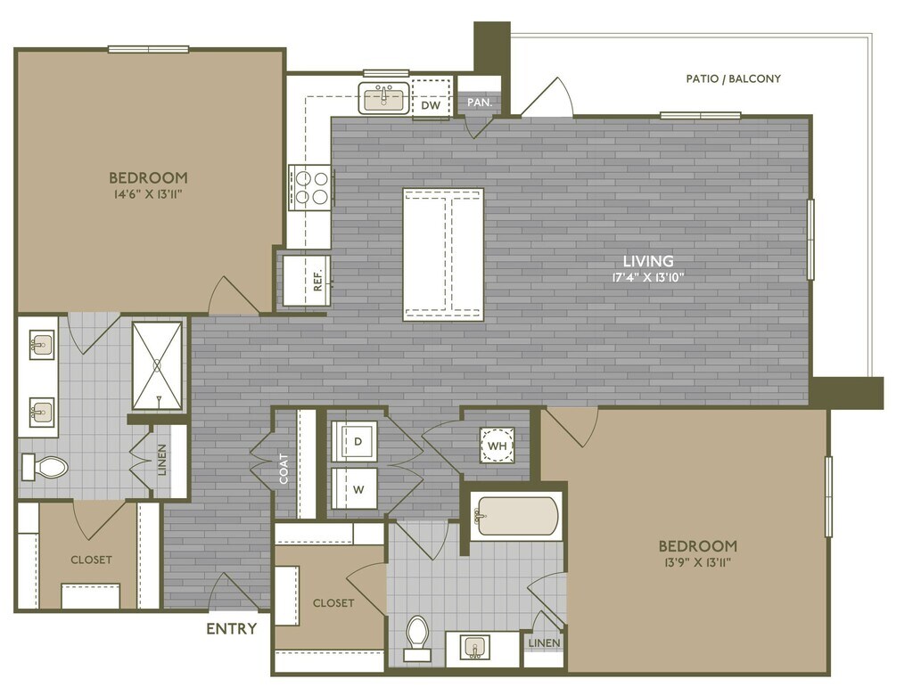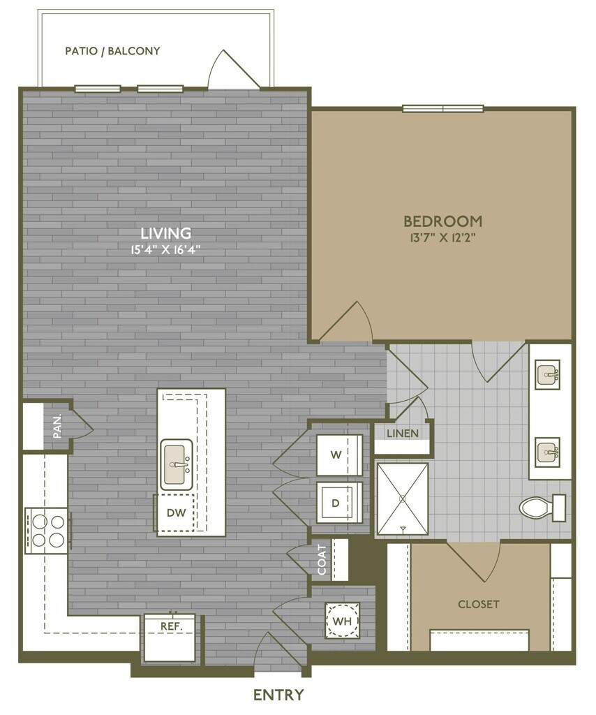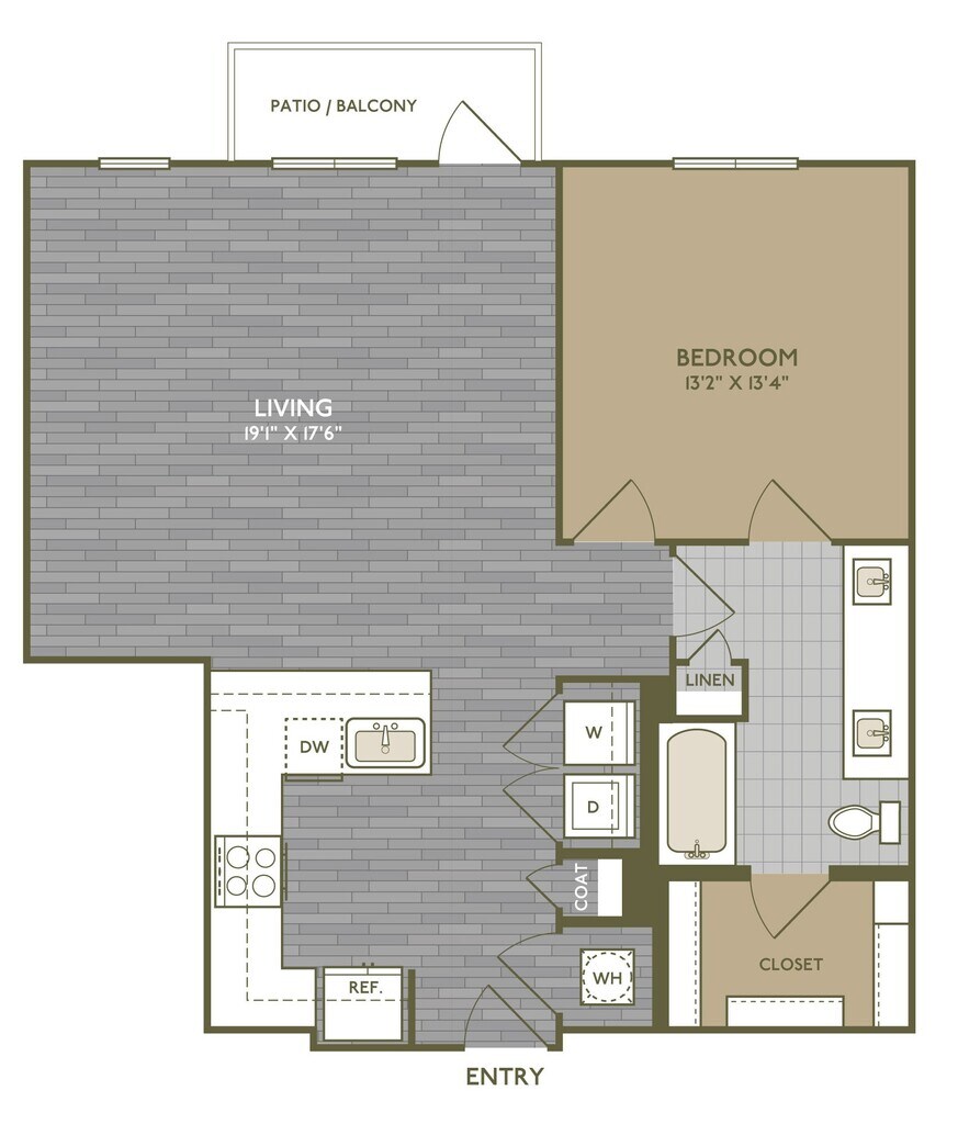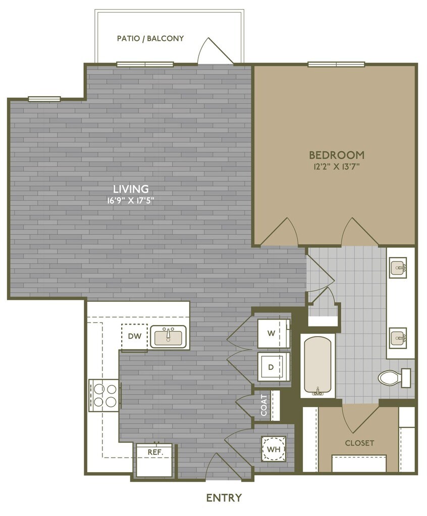 Modelo de apartamento: BrownDesde $1,7351 Dormitorio, 1 Baño, 875 sq ftDisponible Ahora![]()