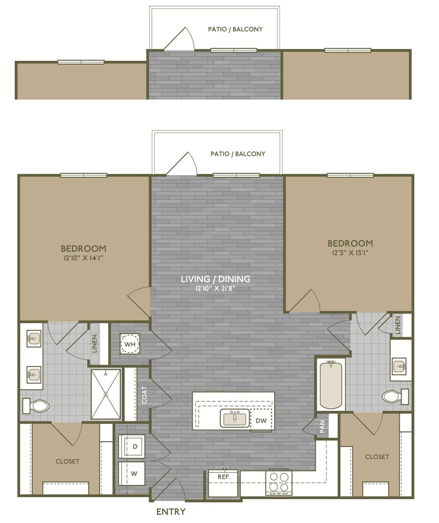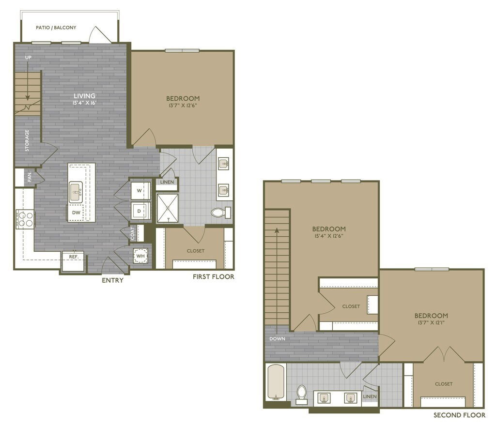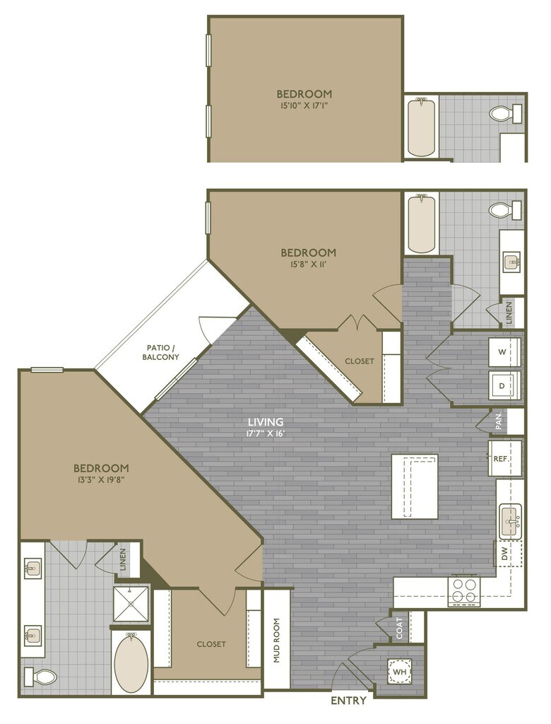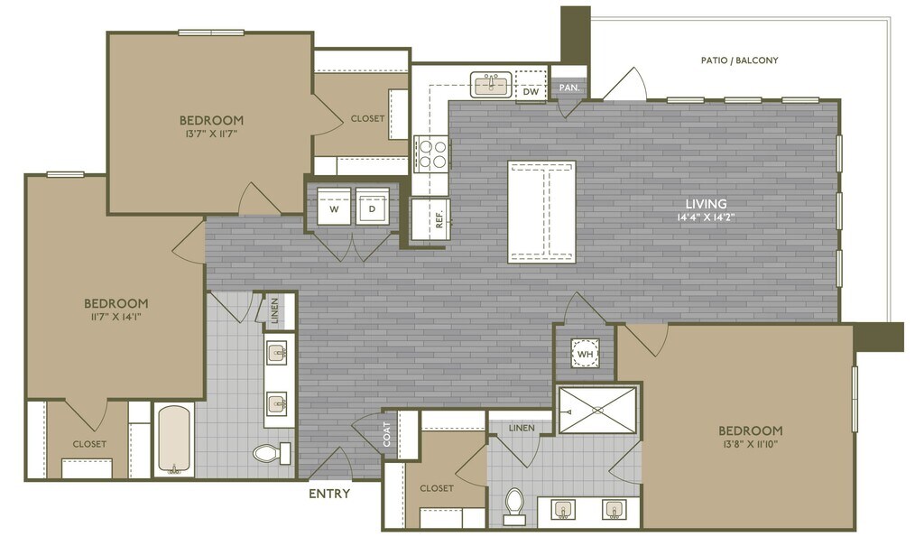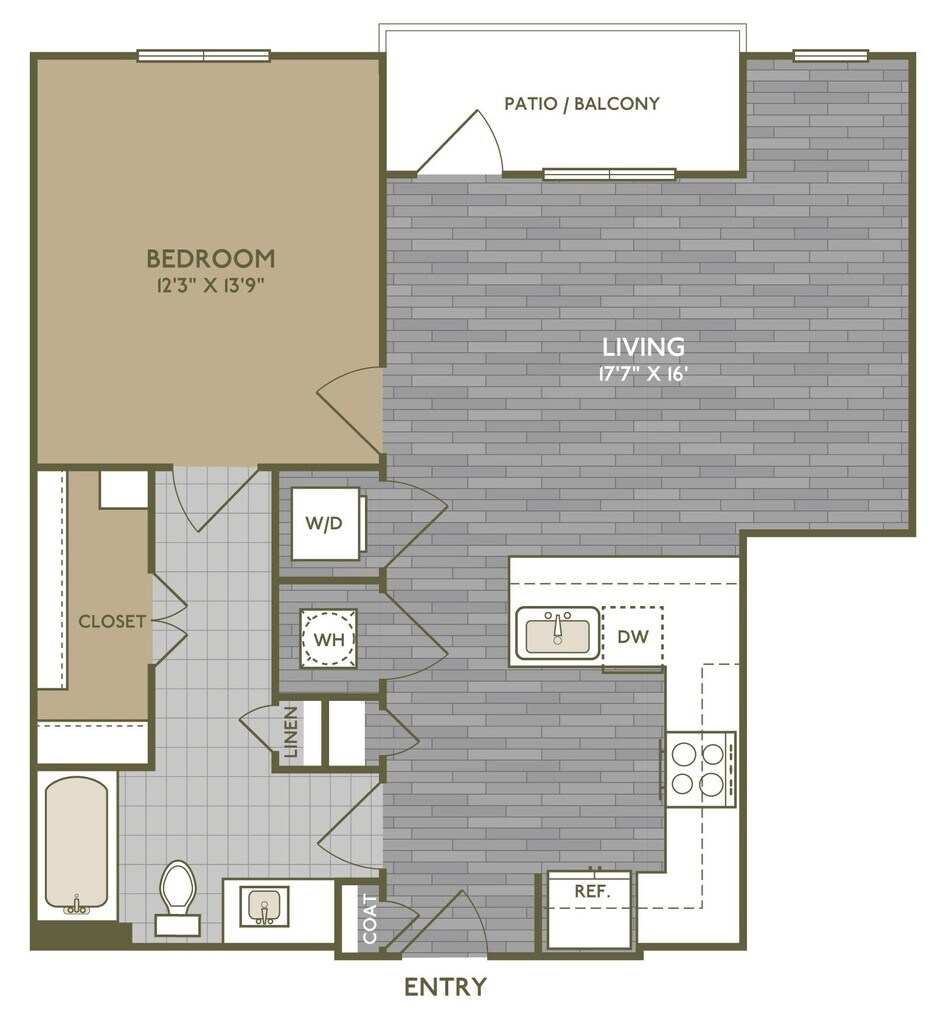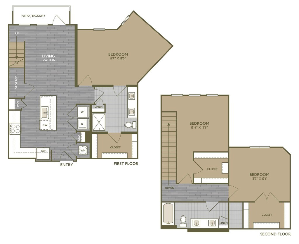 Modelo de apartamento: BrownDesde $1,7351 Dormitorio, 1 Baño, 875 sq ftDisponible Ahora![]()