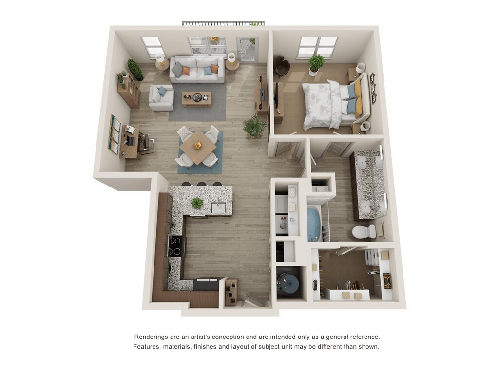1 Dormitorio, 1 Baño, 875 pies²Disponible AhoraGalería del Modelo