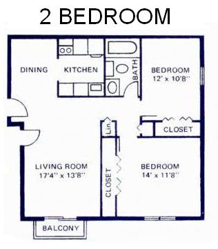 Modelo de apartamento: 2 Bedroom Apartment2 Dormitorios, 1 Baño, 650-750 sq ftNo Disponible2 Bedroom Apartment - Plano 1