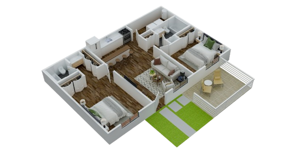 Modelo de apartamento: 2x2$1,1002 Dormitorios, 2 Baños, 864 sq ftDisponible December 28, 2025PlanosFotos![]()