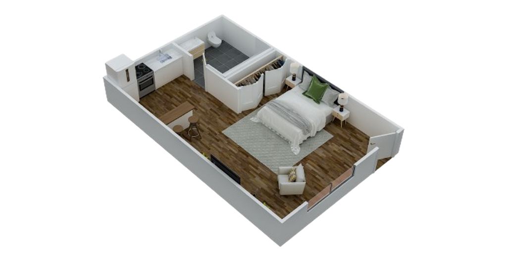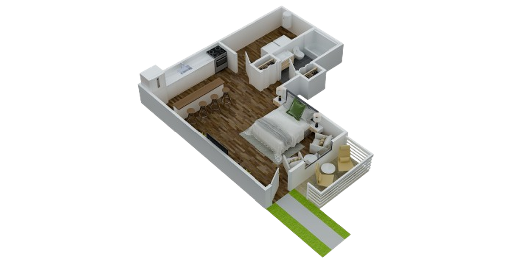 1 Dormitorio, 1 Baño, 576 pies²Disponible AhoraGalería del Modelo