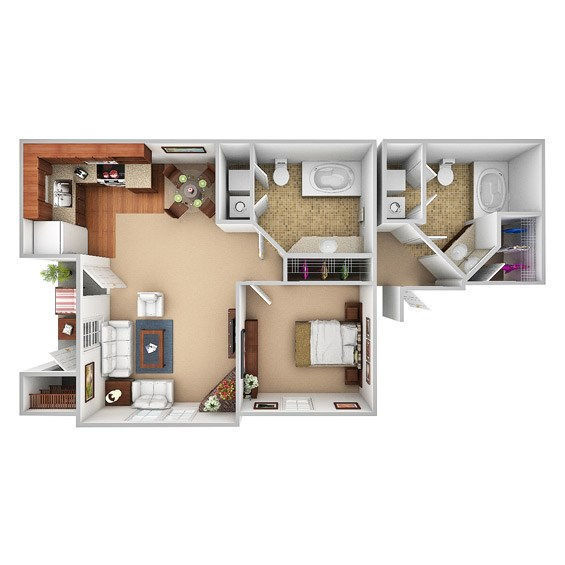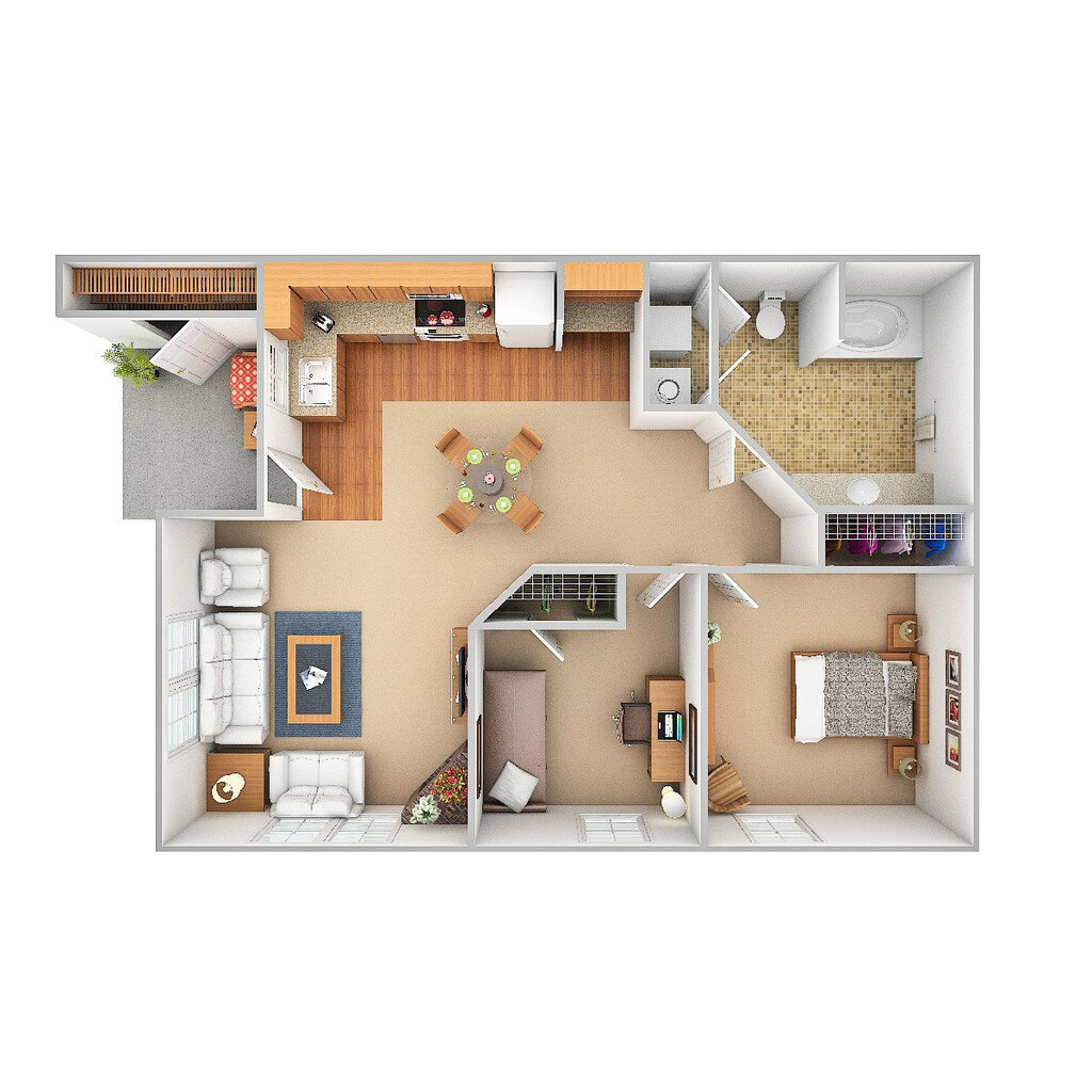 2 Dormitorios, 1 Baño, 750 pies²Disponible AhoraGalería del Modelo