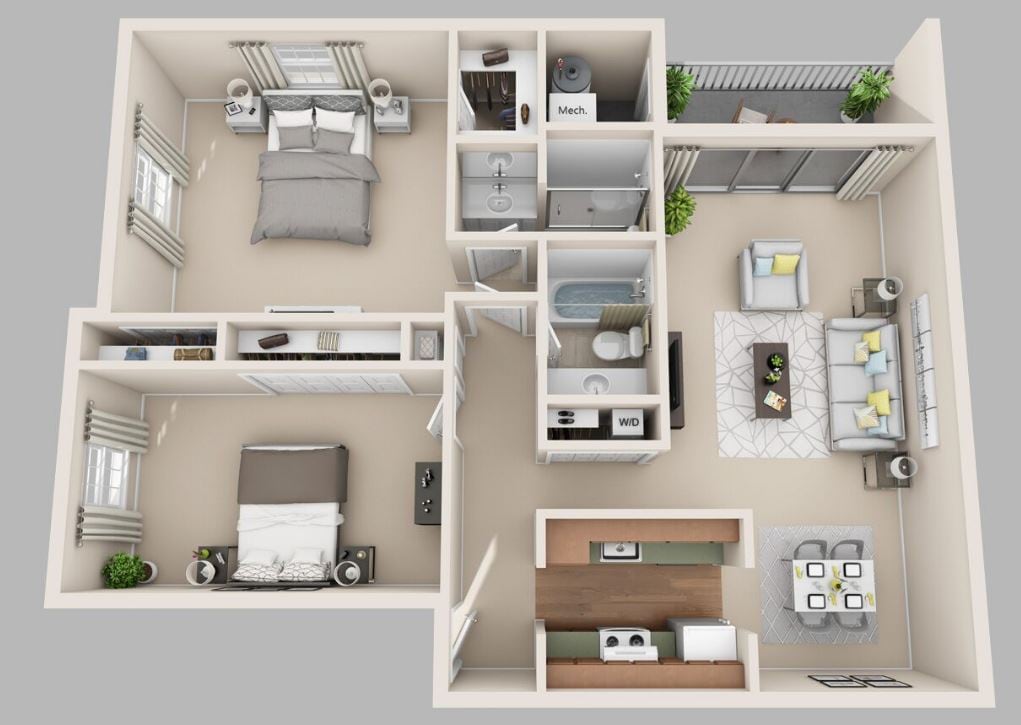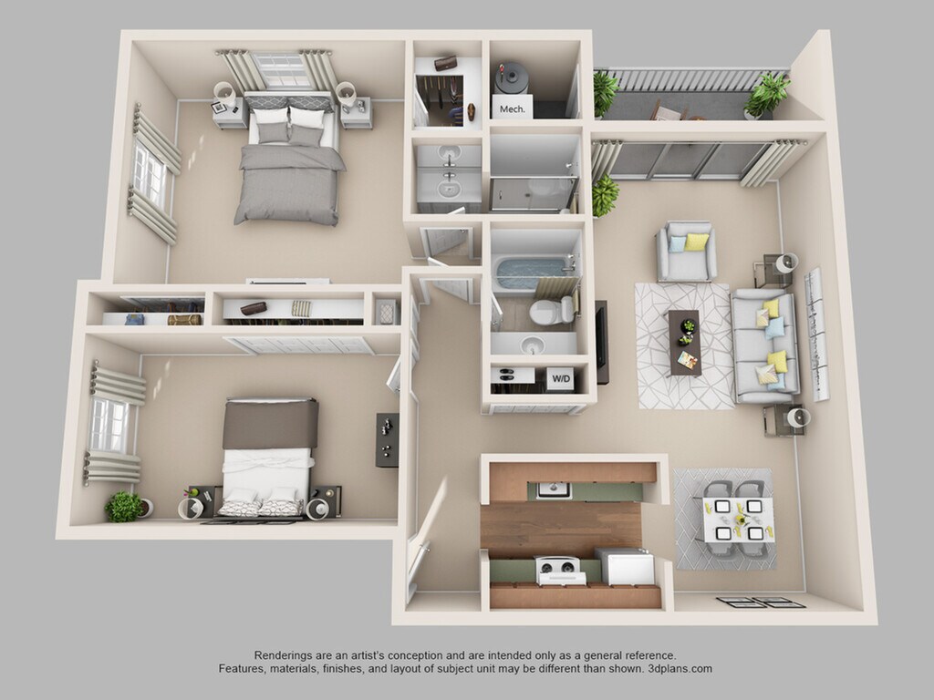 2 Dormitorios, 2 Baños, 946 pies²Precio Mensual TotalDisponible AhoraEl más baratoEsta opción tiene los precios más bajos para este modeloGalería del Modelo