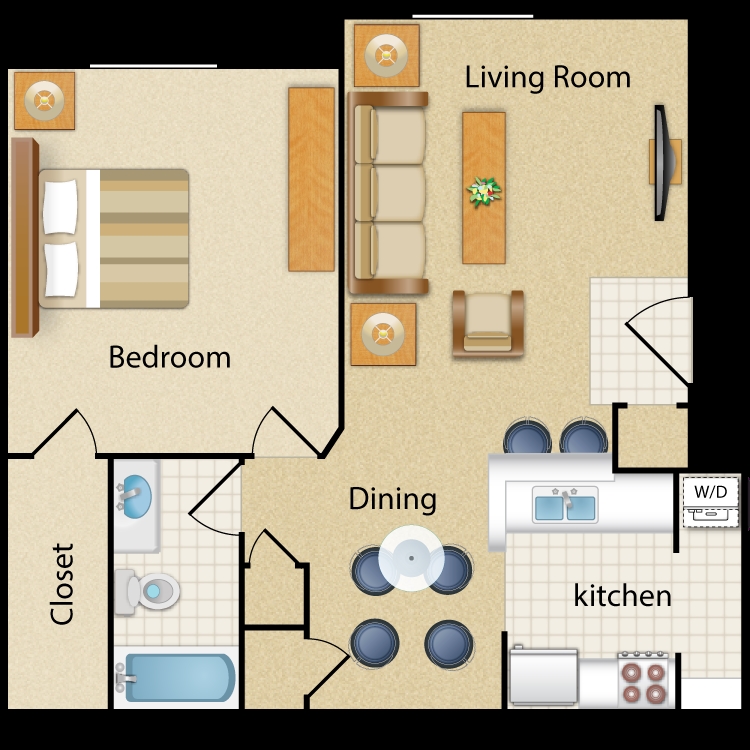 1 Dormitorio, 1 Baño, 661 pies²Disponible AhoraGalería del Modelo