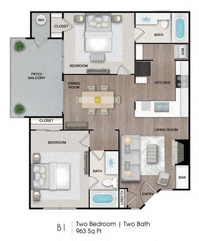 Modelo de apartamento: B12 Dormitorios, 2 Baños, 963 sq ftDisponible December 12, 2025![]()