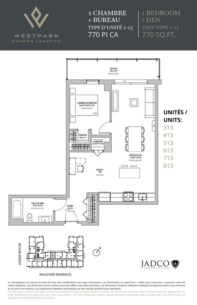 1 Dormitorio, 1 Baño, 770 pies²Disponible AhoraGalería del Modelo