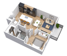 1-Bedroom, 1-Bath - Plano 2 ![]()
