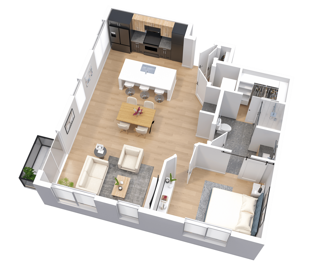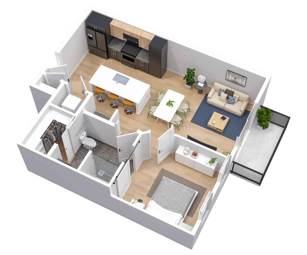 1 Dormitorio, 1 Baño, 649-743 pies²Disponible December 1, 2026Galería del Modelo