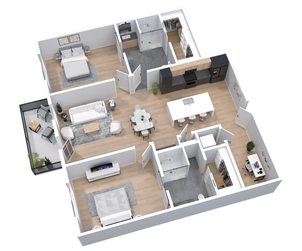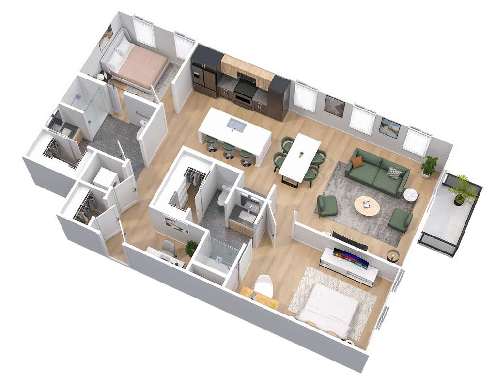 2 Dormitorios, 2 Baños, 975-1271 pies²Disponible December 1, 2026Galería del Modelo