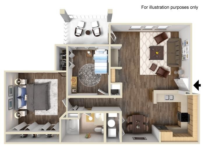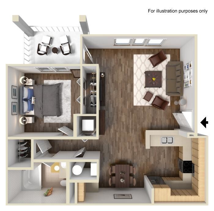 1 Dormitorio, 1 Baño, 703 pies²Disponible AhoraGalería del Modelo