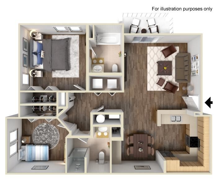 Modelo de apartamento: b2.2Desde $1,5452 Dormitorios, 2 Baños, 873-875 sq ftDisponible Ahora![]()