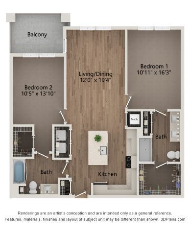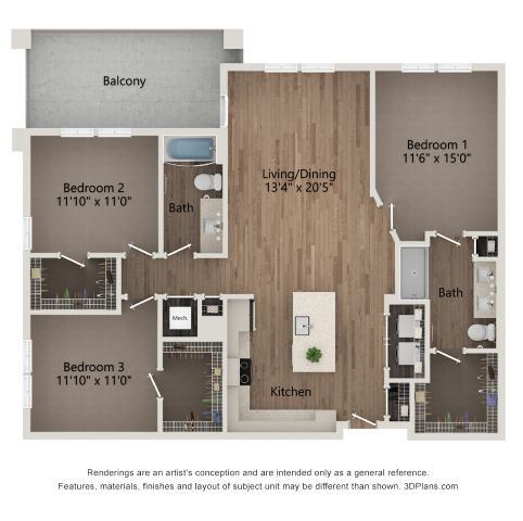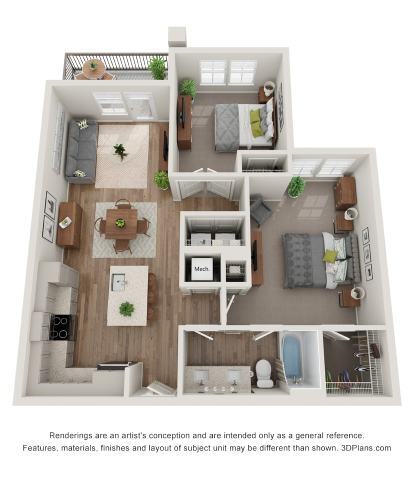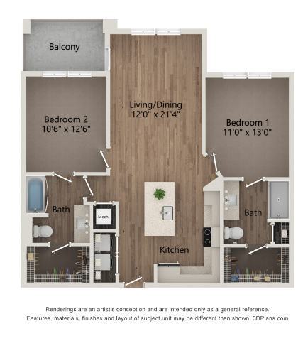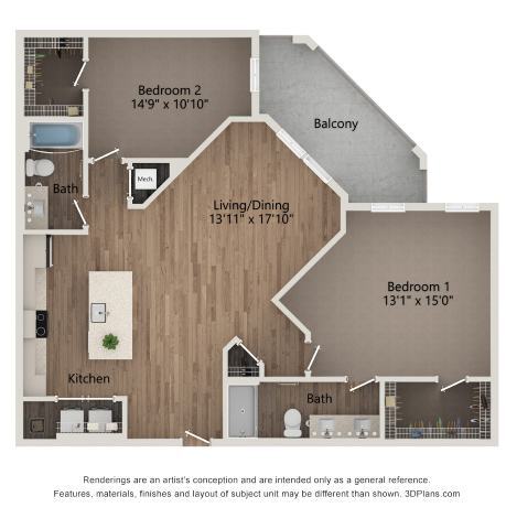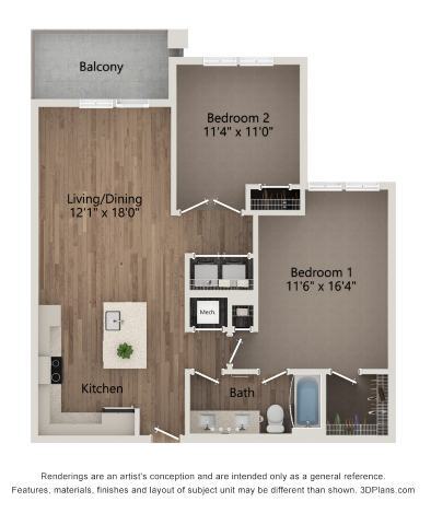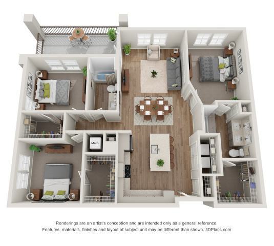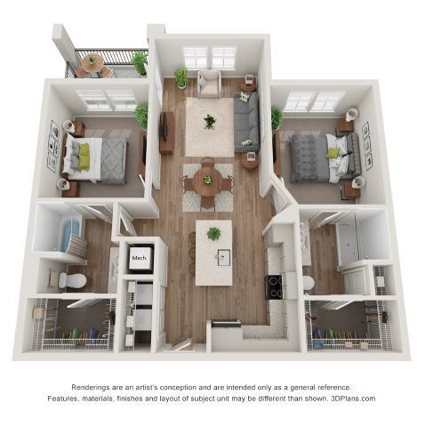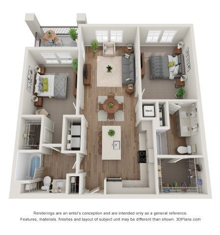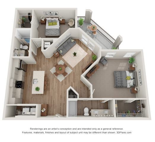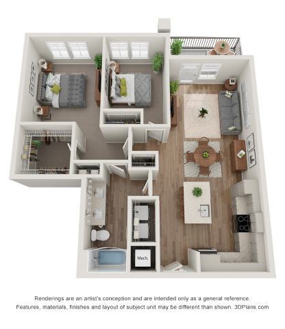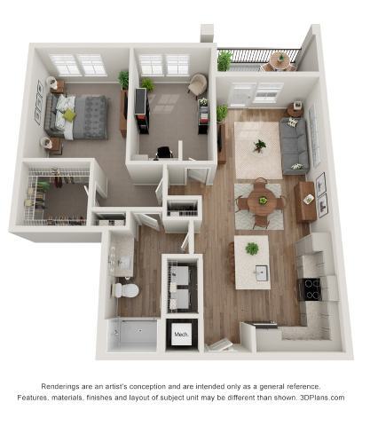 Modelo de apartamento: TulipDesde $1,6971 Dormitorio, 1 Baño, 973 sq ftDisponible Ahora![]()