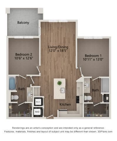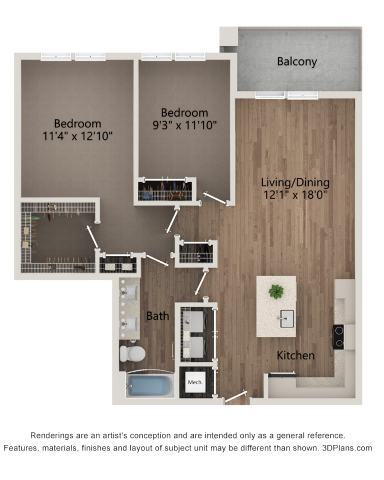 1 Dormitorio, 1 Baño, 973 pies²Disponible AhoraGalería del Modelo