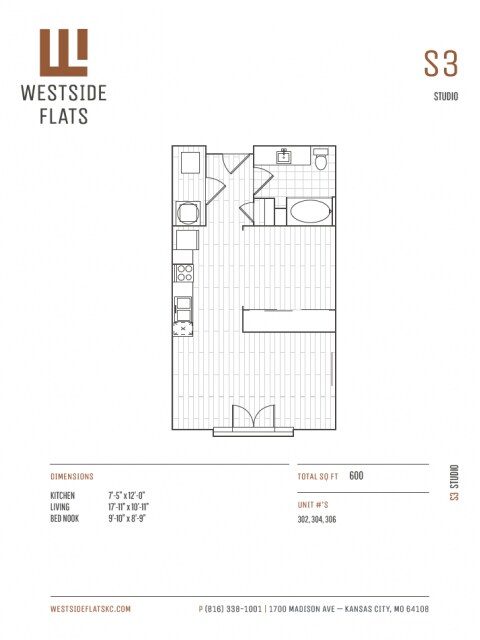 Westside Flats se encuentra en el Barrio Westside North y el código postal 64108 de Kansas City, MO. Esta comunidad está gestionada profesionalmente por EPC Managment