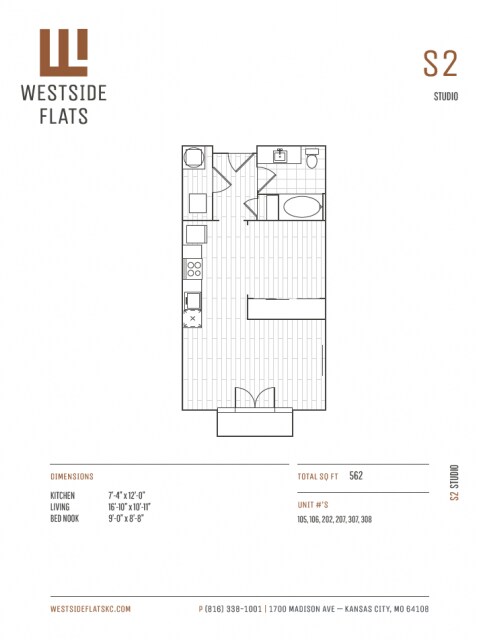 Westside Flats se encuentran en 1700 Madison Ave cerca de la zona Westside North en Kansas City, MO