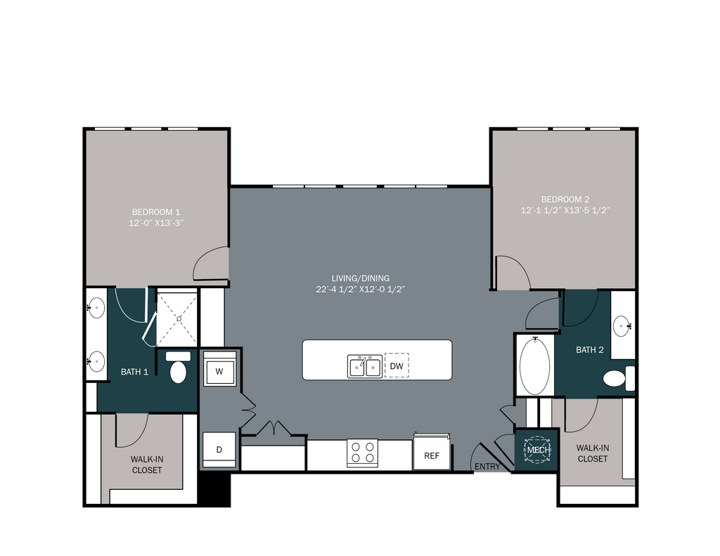 Modelo de apartamento: A5Desde $1,5991 Dormitorio, 1 Baño, 845 sq ftDisponible Ahora![]()