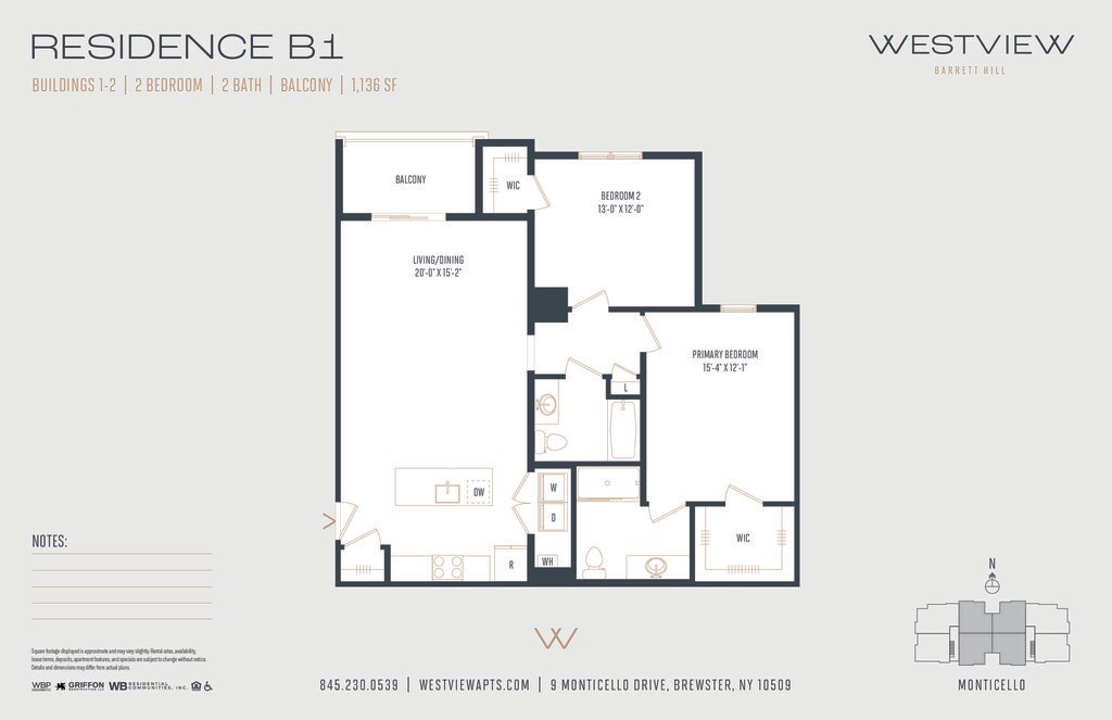 2 Bedroom Large - 2 Bath with Balcony - Plano 1 Unidad de apartamento: 16001Modelo de apartamento: 2 Bedroom Large - 2 Bath with Balcony$3,2622 Dormitorios, 2 Baños, 1136 sq ftDisponible January 7, 2026![]()