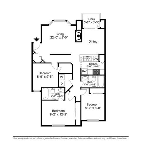 Modelo de apartamento: 3x2 RenovatedDesde $2,4533 Dormitorios, 2 Baños, 1125 sq ftDisponible AhoraLos planos son representaciones artísticas. Todas las dimensiones son aproximadas. El producto y las especificaciones reales pueden variar en tamaño o detalle. No todas las características están disponibles en cada vivienda en alquiler. Por favor, consulta con un representante para obtener más detalles.