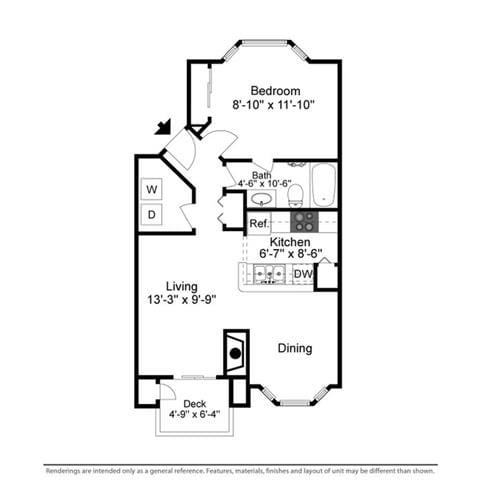Modelo de apartamento: 1x1 Renovated$1,9991 Dormitorio, 1 Baño, 732 sq ftDisponible AhoraLos planos son representaciones artísticas. Todas las dimensiones son aproximadas. El producto y las especificaciones reales pueden variar en tamaño o detalle. No todas las características están disponibles en cada vivienda en alquiler. Por favor, consulta con un representante para obtener más detalles.