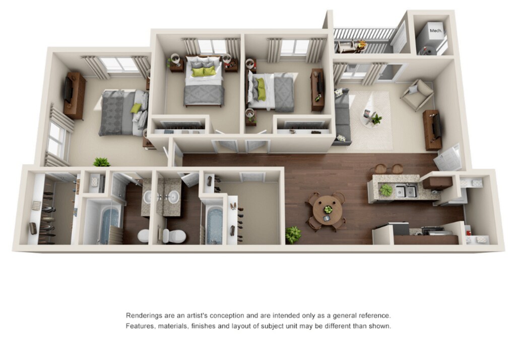 3 Dormitorios, 2 Baños, 1150 pies²Disponible Mar 3Galería del Modelo
