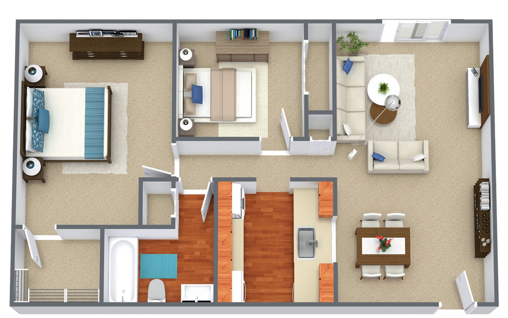 2 Dormitorios, 1 Baño, 850 pies²Disponible AhoraGalería del Modelo