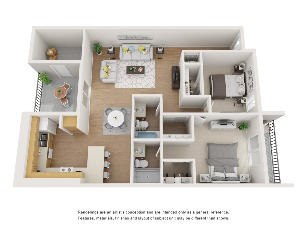 Modelo de apartamento: 2x2$2,1542 Dormitorios, 2 Baños, 1350 sq ftDisponible Ahora![]()
