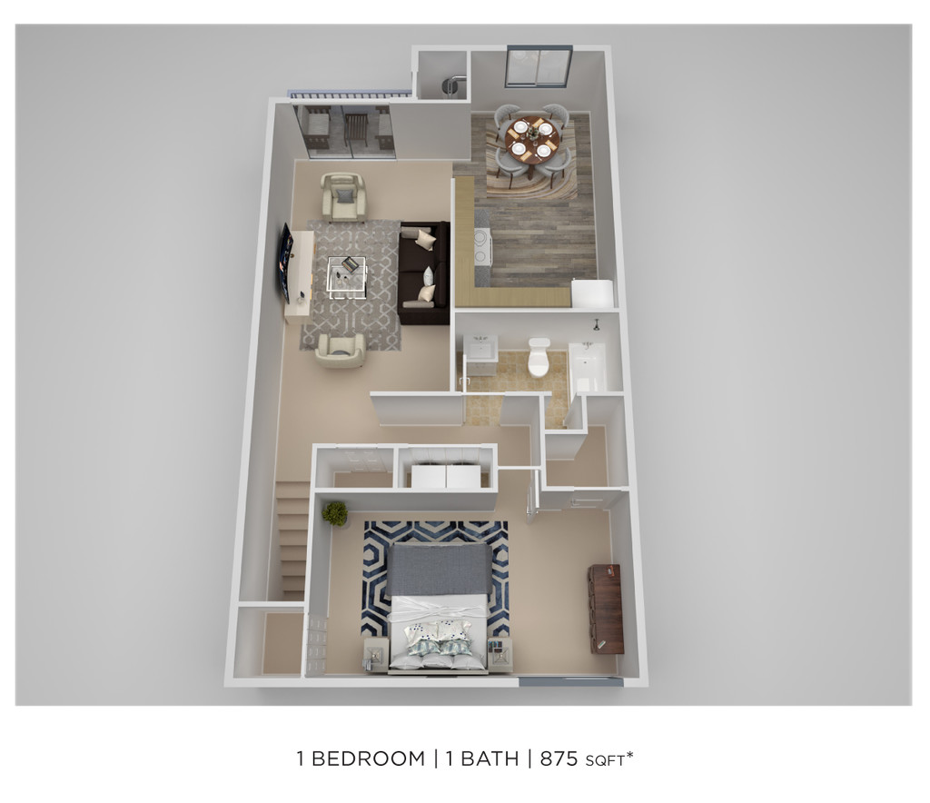 1 Dormitorio, 1 Baño, 875 pies²Disponible AhoraGalería del Modelo