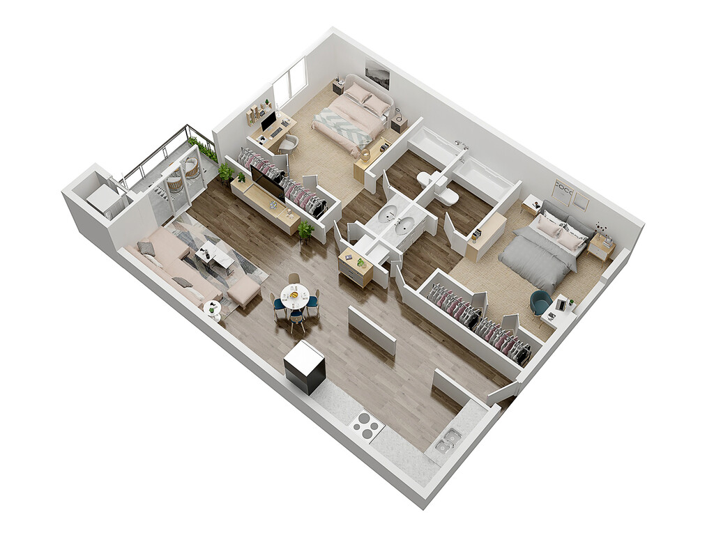2 Dormitorios, 2 Baños, 960 pies²Galería del Modelo