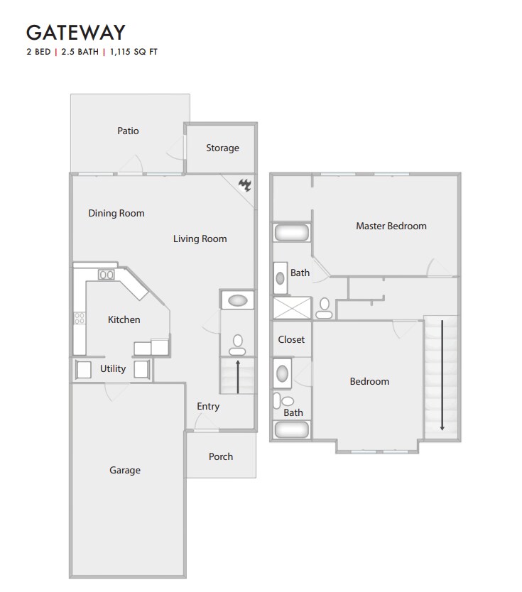 Modelo de apartamento: Gateway$1,8902 Dormitorios, 2.5 Baños, 1115 sq ftNo Disponible![]()